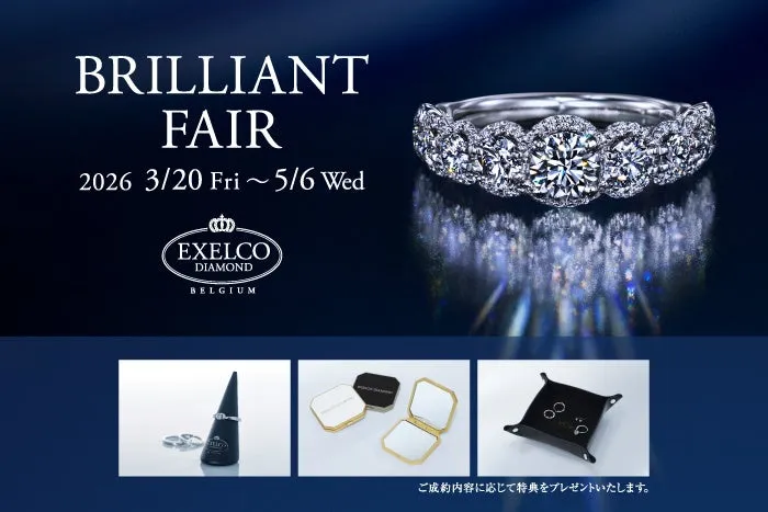 BRILLIANT FAIR across all 60 locations throughout Japan. Known for their exceptional quality, Exelco Diamonds are celebrated for their outstanding brilliance, which has been ratified by leading certification entities.