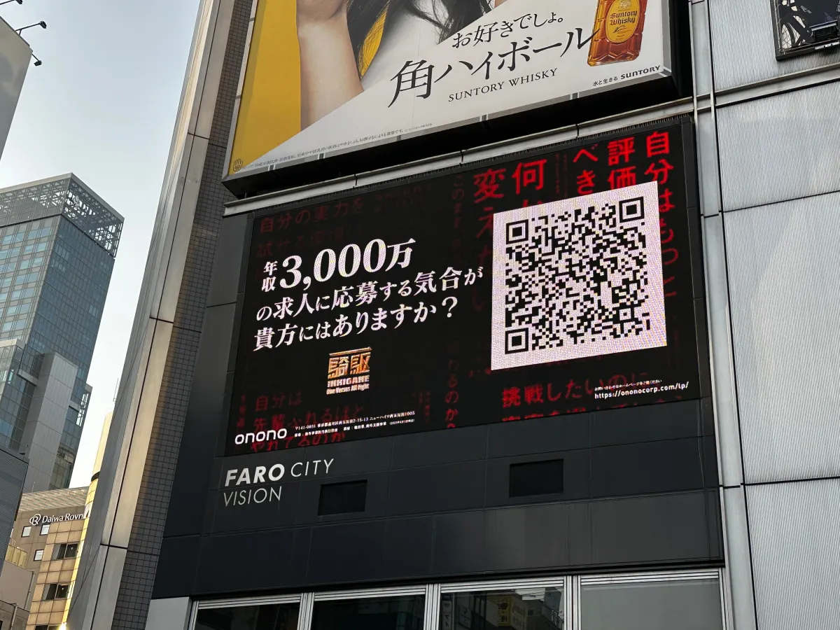 On May 19, 2025, a new outdoor advertisement for Onono's recruitment campaign, called "Ikigake," will be unveiled at the large vision screen in front of Shimbashi SL Square. This initiative not only offers a remarkable salary of 30 million yen, but also invites talented individuals to partake in an extraordinary job hunting experience.