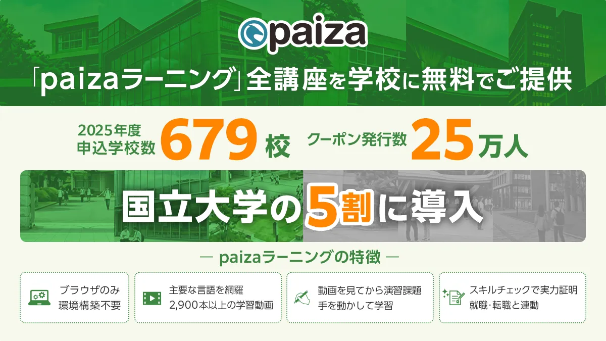 To counteract the declining fundamental capabilities triggered by overly simplified AI applications, paiza provides comprehensive programming courses tailored to various user levels. They have publicly shared a curriculum mapping to assist schools in their adoption of the necessary skills.