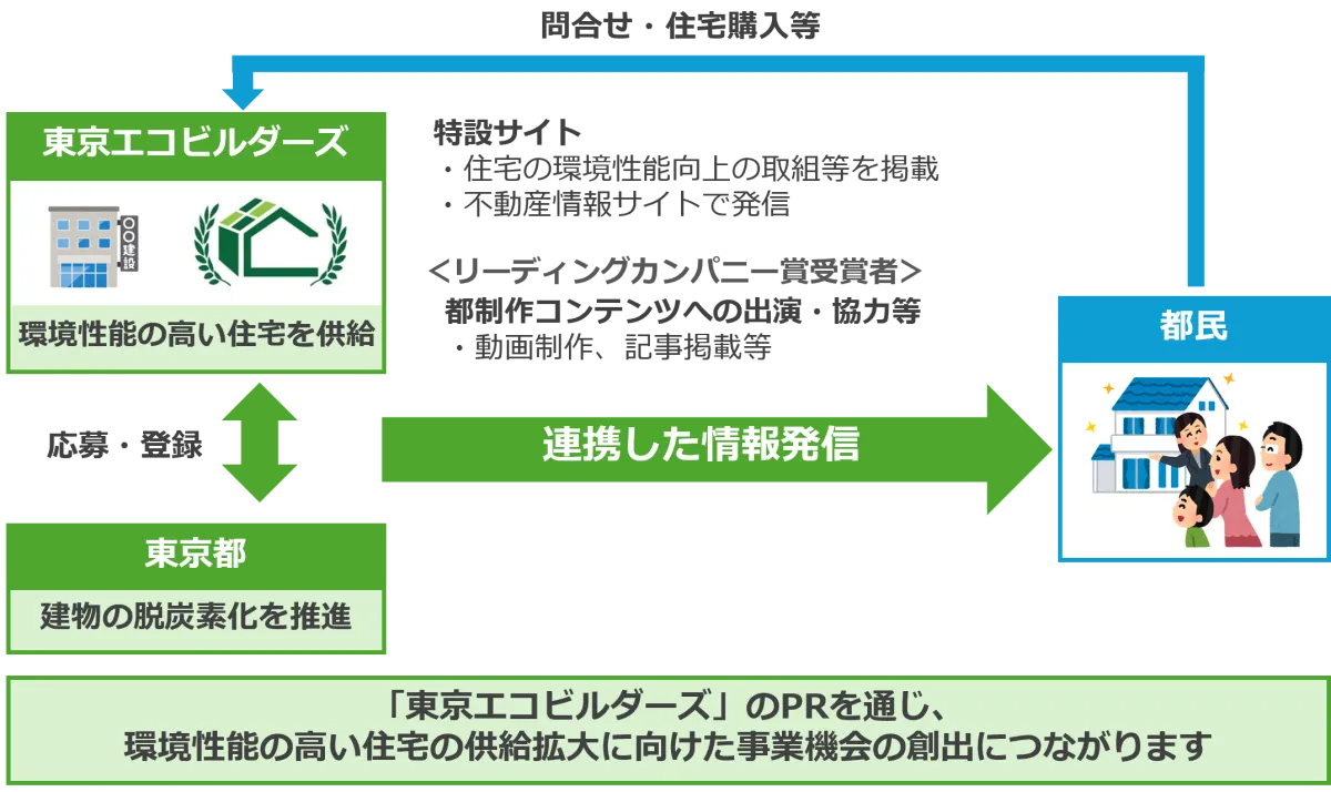 The Tokyo Metropolitan Government highly encourages businesses engaged in producing high-performance environmentally friendly residences to apply for the Tokyo Eco Builders program and the Tokyo Eco Builders Award. This initiative not only aids businesses in promoting their ecological initiatives but does so by providing a platform for spreading awareness about sustainable living among the residents of Tokyo. Recognized participants can also benefit from partnerships in city-produced promotional content, further enhancing their visibility and outreach to potential customers.