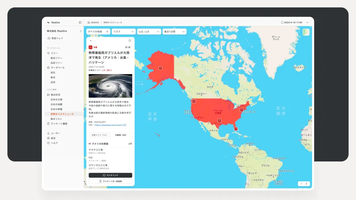 JX Communications, through its risk information service called FASTALERT, has been diligently gathering and analyzing information from reliable global web sources. This effort focuses on providing accurate and timely risk information to users of Resilire, enhanced with AI analysis to sift through extensive regional data.
